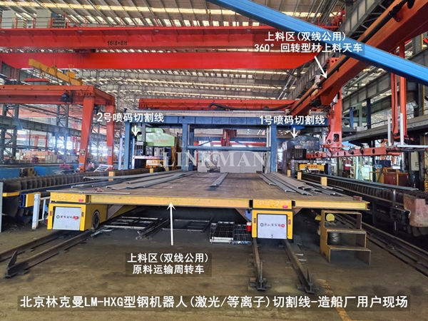 LM-HXG船舶建造型材机器人切割线不仅可以大幅提高海工、造船厂生产效率和工件质量,还能够进一步减少车间生产人员和管理成本,为海工造船厂大型构件提供了工件尺寸精准、焊接坡口整洁等条件。